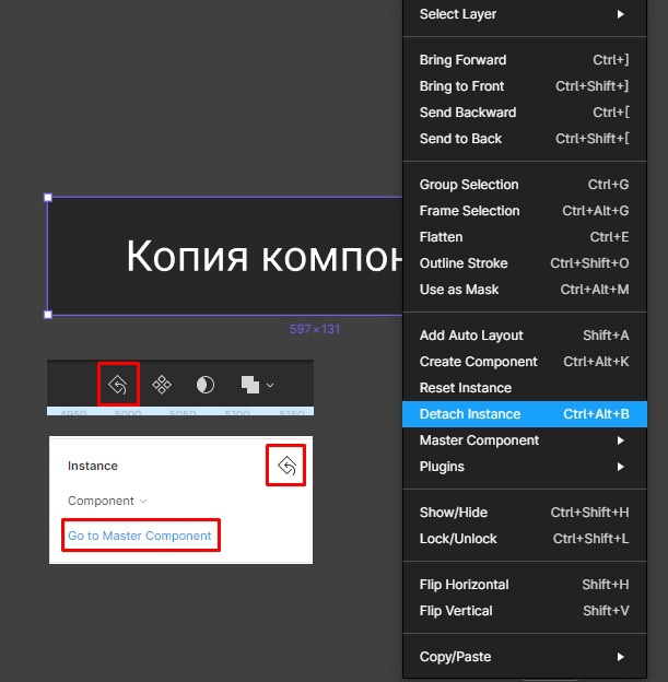 Как разорвать связь копии с мастер-компонентом?