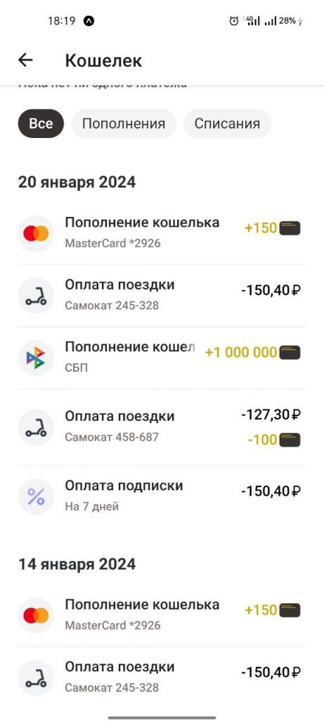 Примечание! Если на кошельке есть деньги, то они сначала списываются с него, если в результате поездки денег на кошельке не хватило, то оставшаяся часть списывается со способа оплаты(карты). Если на кошельке нет денег, то они сразу списываются со способа оплаты.